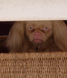 Marilyn, una Pequinesa, no encuentra mejor sitio para esconderse que el revistero de debajo de la mesa. Determinados timbres y sonidos así como la muchedumbre, la producen un profundo pánico.